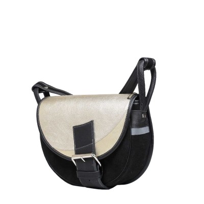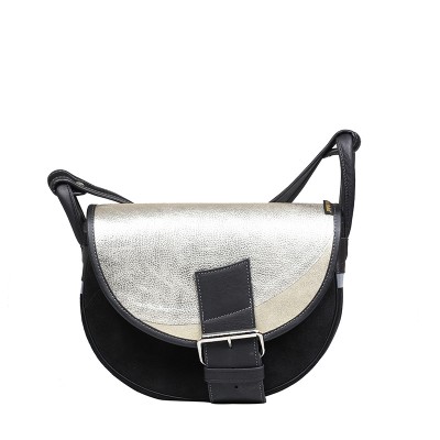 Czarno-złota torebka półokrągła z klamrą - Freshman Mini