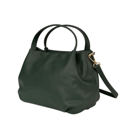 Torebka damska skórzana kuferek – zielona, średnia wielkość, lekka i funkcjonalna