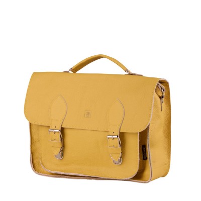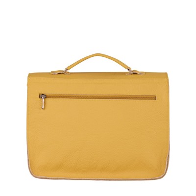 Żółta torba skórzana Dalia to elegancka listonoszka w kolorze miodowym, wykonana ze skóry naturalnej w stylu vintage. Można ją nosić na ramieniu, przez ramię lub w dłoni dzięki regulowanemu paskowi i krótkiej rączce. Komora główna mieści format A4, zamykana jest na zamek, a wnętrze zawiera smycz na klucze i kieszonkę na długopisy. Z przodu znajduje się niezapinana kieszeń, a z tyłu kieszeń zapinana na zamek. Klapa zapina się na dwa zatrzaski teczkowe. Wymiary 32x23,5x10 cm czynią ją idealną torbą do pracy, na uczelnię czy do szkoły.