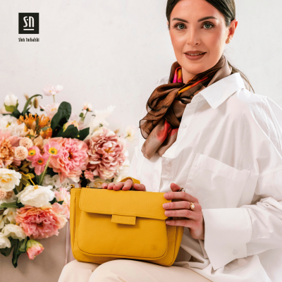Elegancka torebka skórzana na ramię Anna, wykonana z trwałej groszkowej skóry licowej w intensywnym żółtym kolorze. Przestronny układ wnętrza z dwiema przegrodami i główną komorą mieści format A5 i zapewnia porządek. Główna komora zamykana na zamek, przednia kieszeń na magnes dla szybkiego dostępu. Wymiary: 29 × 17 × 6,5 cm, długość paska 58 cm. Możliwość personalizacji dodatkowymi akcesoriami i paskami. Idealna na co dzień!