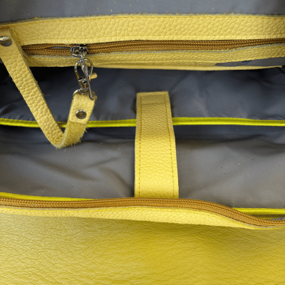 Model Teofila to pojemny, miękki plecak wykonany w całości z naturalnej skóry o fakturze groszkowej, w intensywnym kolorze słonecznej żółci. Ten praktyczny i stylowy plecak świetnie sprawdzi się zarówno w pracy, szkole, na uczelni, jak i podczas wycieczek.